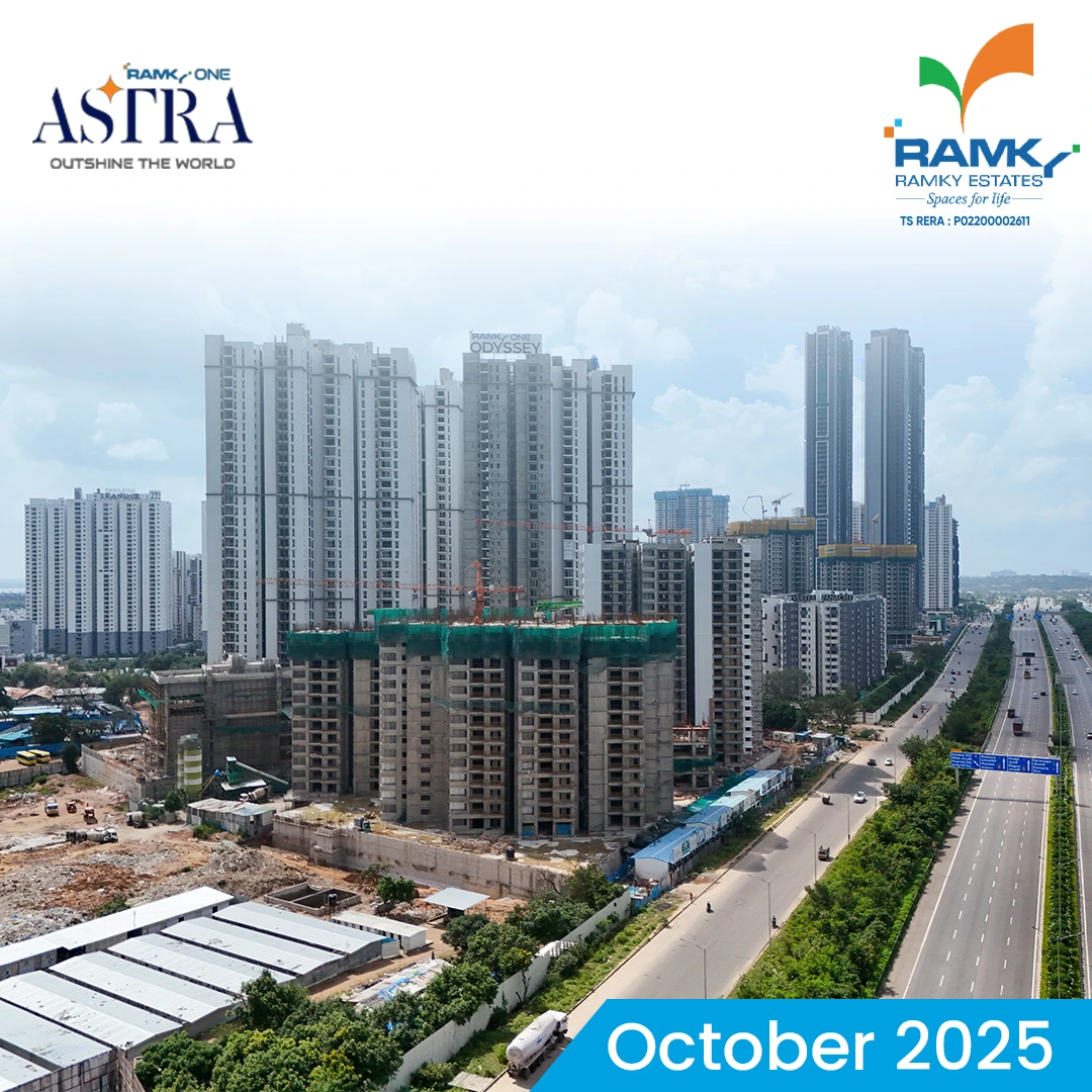Designed to offer a luxurious and comfortable living experience, every apartment at Ramky One Astra is thoughtfully crafted with attention to detail and premium quality fittings. The project perfectly blends modern amenities and lush green surroundings, making it an ideal gated community for those seeking a peaceful and serene lifestyle. Ramky Estates is one of India’s leading builders whose expertise in offering top-quality housing options to home hunters has no match. Ramky One Astra is the latest premium development of the builder in Kokapet and a landmark residence for anyone looking for a happy and satisfying place to call home. Invest in your dream home at Ramky One Astra, where luxury and tranquillity meet in perfect harmony.